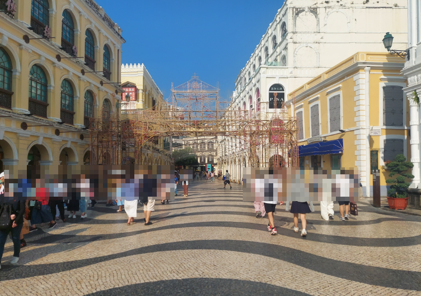 마카오에 10월 18일 도착해서 호텔 체크인 후 가장 먼저 찾은 곳은 세나도 광장이었습니다. 바닥에 물결처럼 이어진 포르투갈식 타일 문양이 인상적이고, 주변을 둘러싼 파스텔톤 건물들이 유럽의 작은 도시를 떠올리게 합니다. 관광객이 많은 편이지만 분위기가 소란스럽기보다는 활기차고 밝은 느낌에 가깝습니다. 햇살이 좋은 시간대라 광장 전체가 부드러운 색감으로 물들어 사진을 찍기에도 좋았습니다. 다양한 국적의 여행자들이 오가는 모습 속에서 마카오 특유의 다문화적인 분위기를 자연스럽게 느낄 수 있었습니다.