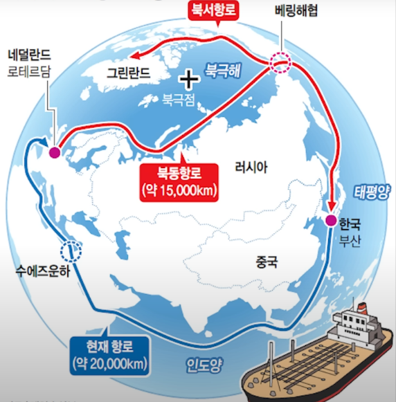 지구의 가장 북쪽 바닷길이 글로벌 물류 지도를 바꿀 수 있다는 이야기가 점점 현실이 되고 있습니다. 바로 북극 항로입니다. 기후 변화로 북극의 해빙 기간이 길어지면서, 지도 속 개념에 불과하던 항로가 실제 상업 운송의 대안으로 떠오르고 있습니다. 이 변화는 단순히 유럽과 아시아를 잇는 문제를 넘어, 동북아 대표 항만인 부산항의 역할까지 다시 생각하게 만듭니다. 북극 항로란 무엇인지 수에즈 운하를 대체할 수 있는지 북서항로, 북동항로 차이에 대해서 알아보겠습니다.